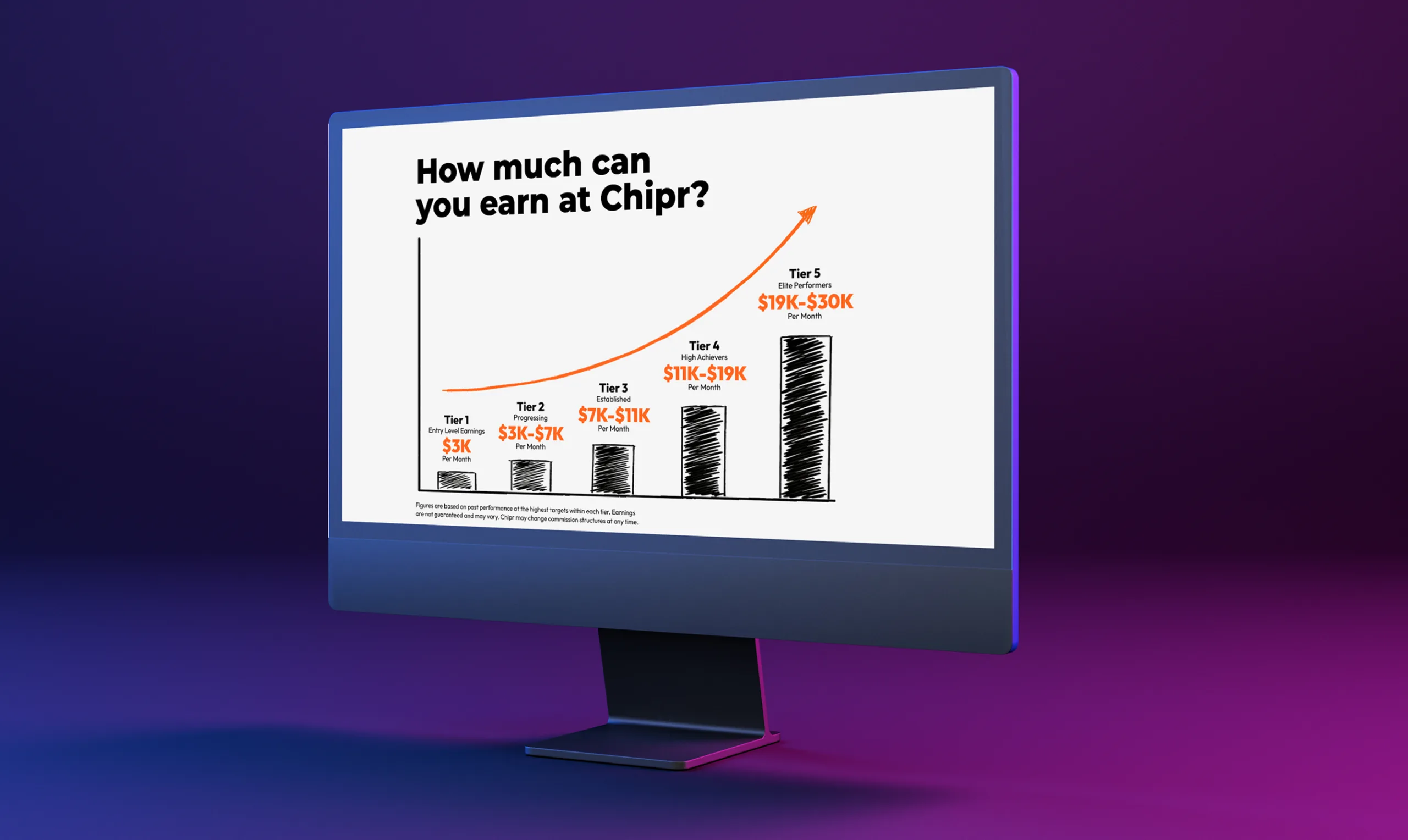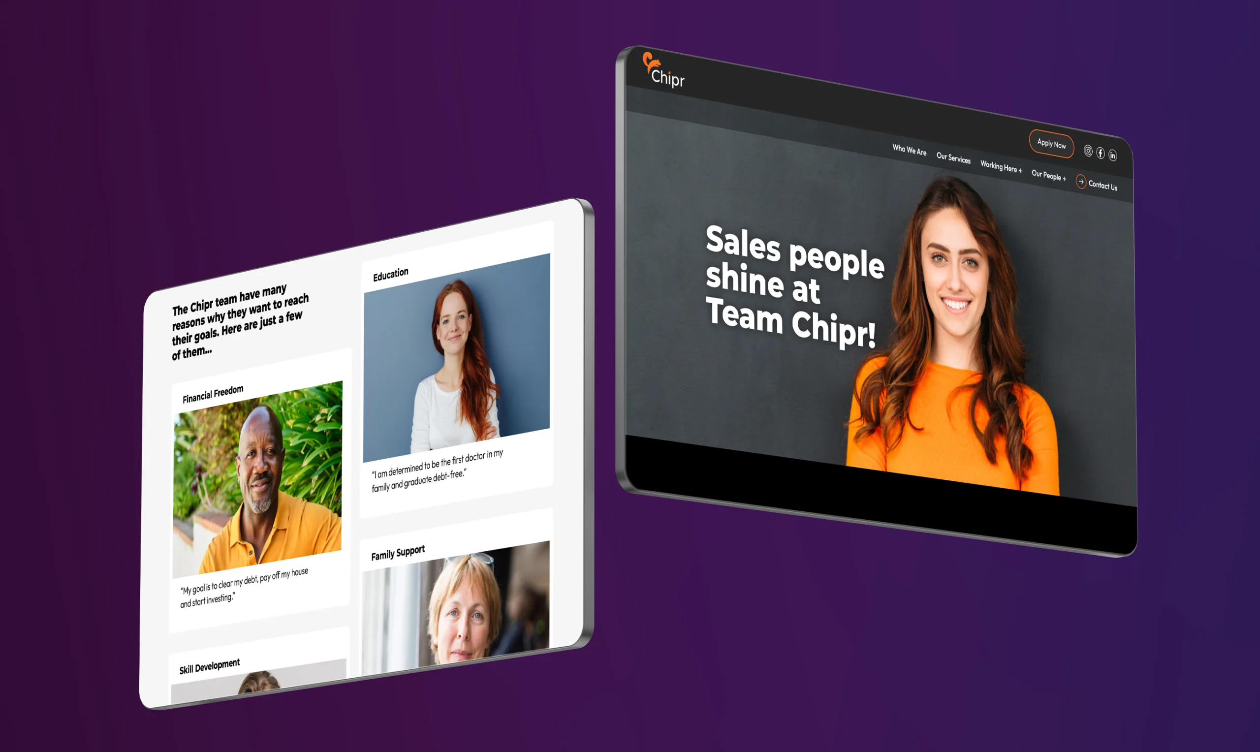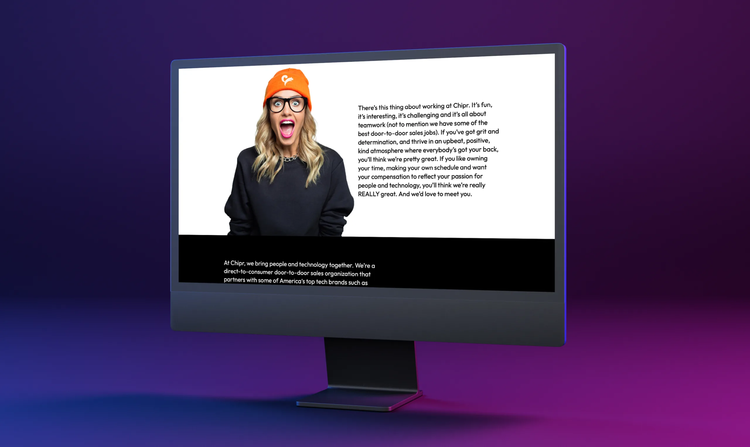 CHIPR, a leader in door-to-door sales, needed a modern website and a targeted marketing strategy to increase leads. Their aim was to align its brand to attract top sales talent within its target audience with significant earning potential opportunities.