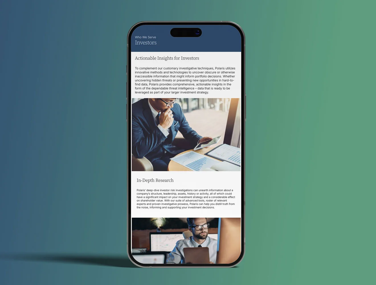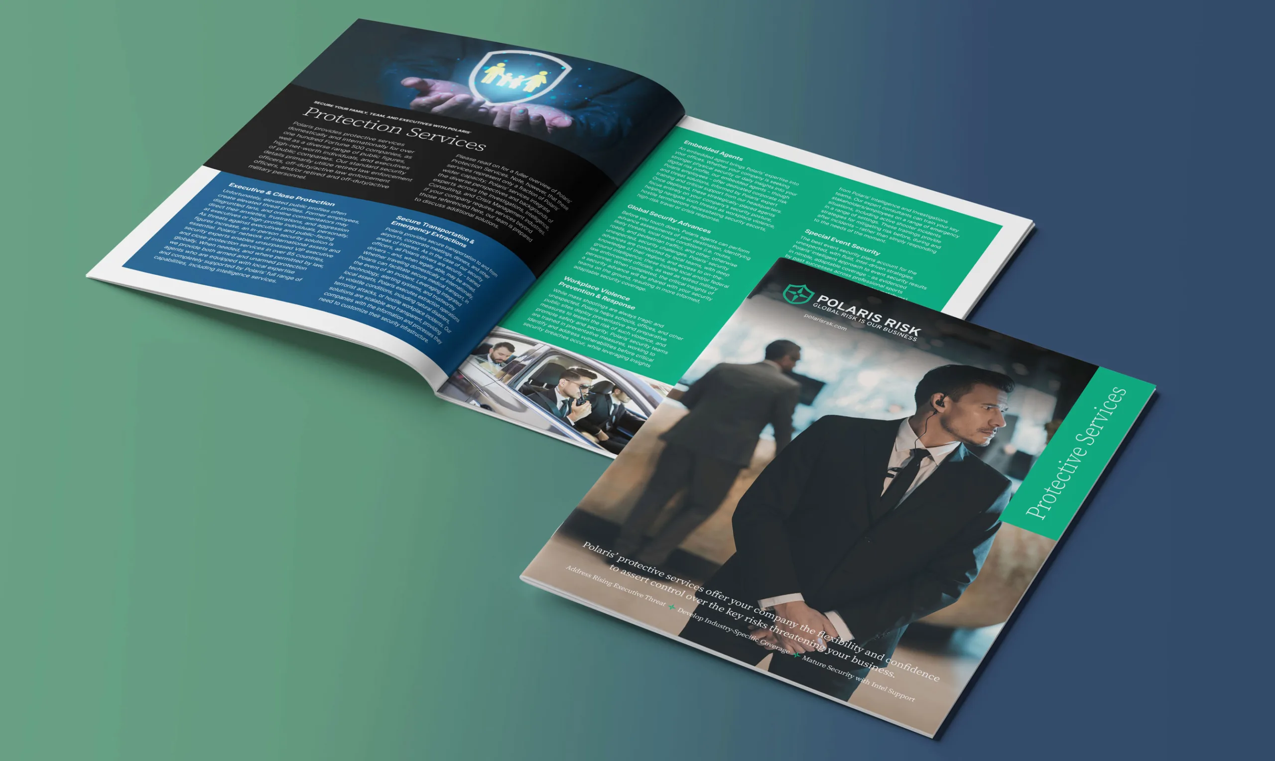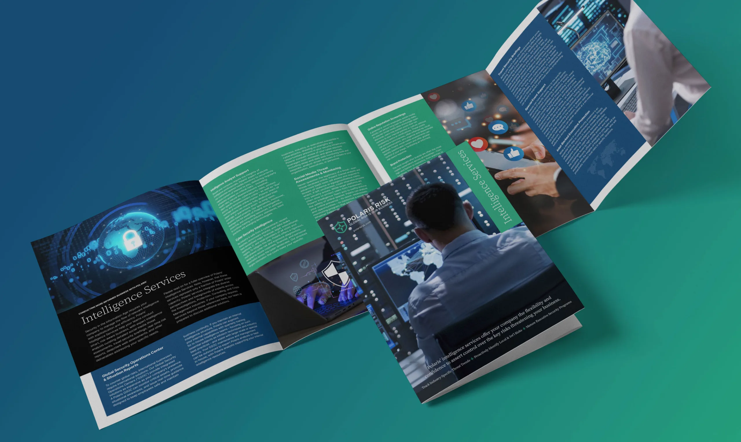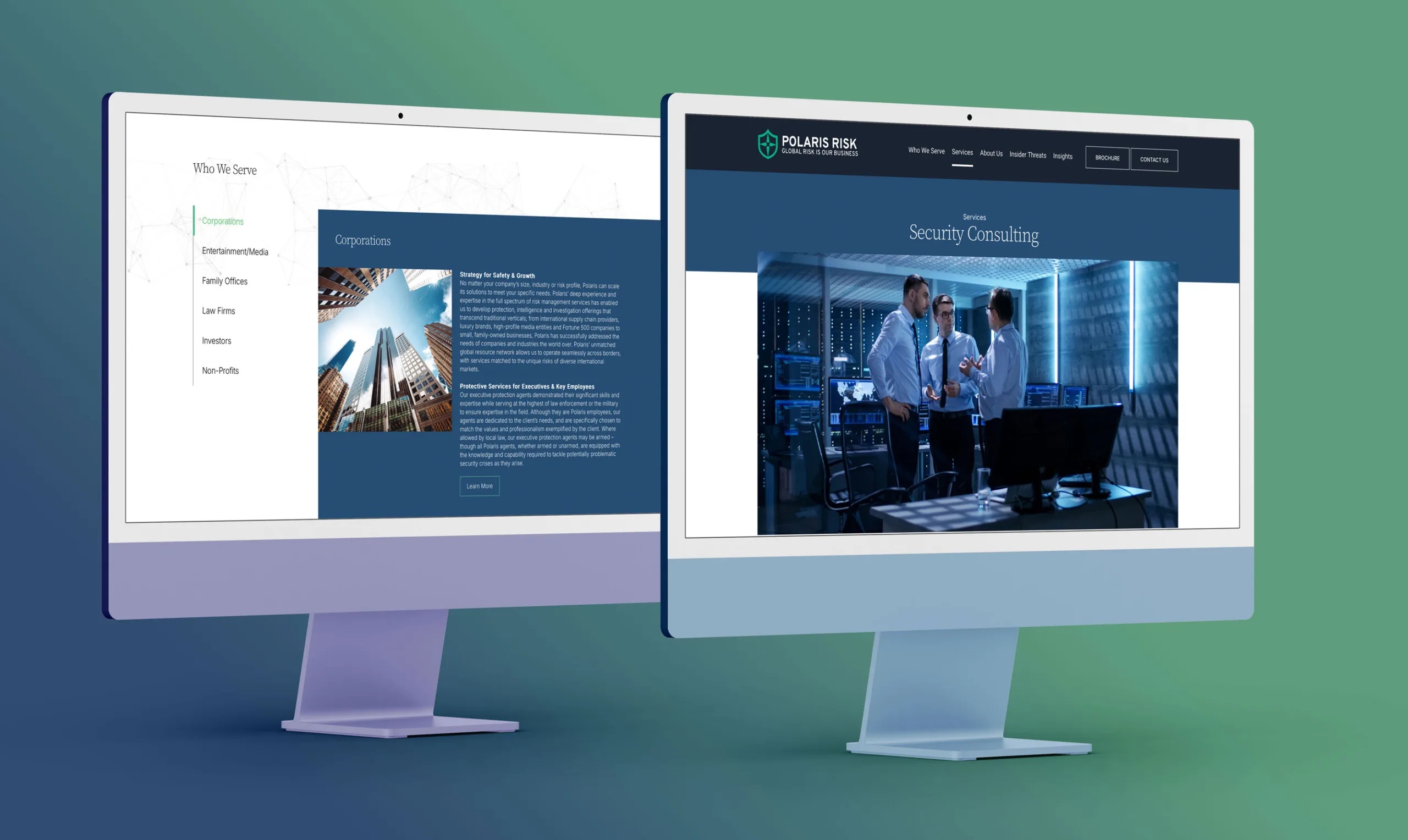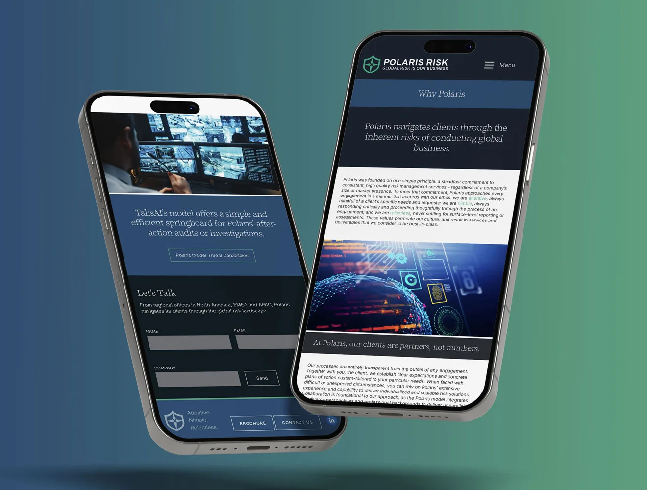 Polaris Risk needed an updated website to better reflect the depth and quality of their services. Additionally, their company brochure and service line brochures required a redesign to align with their brand and capture attention.